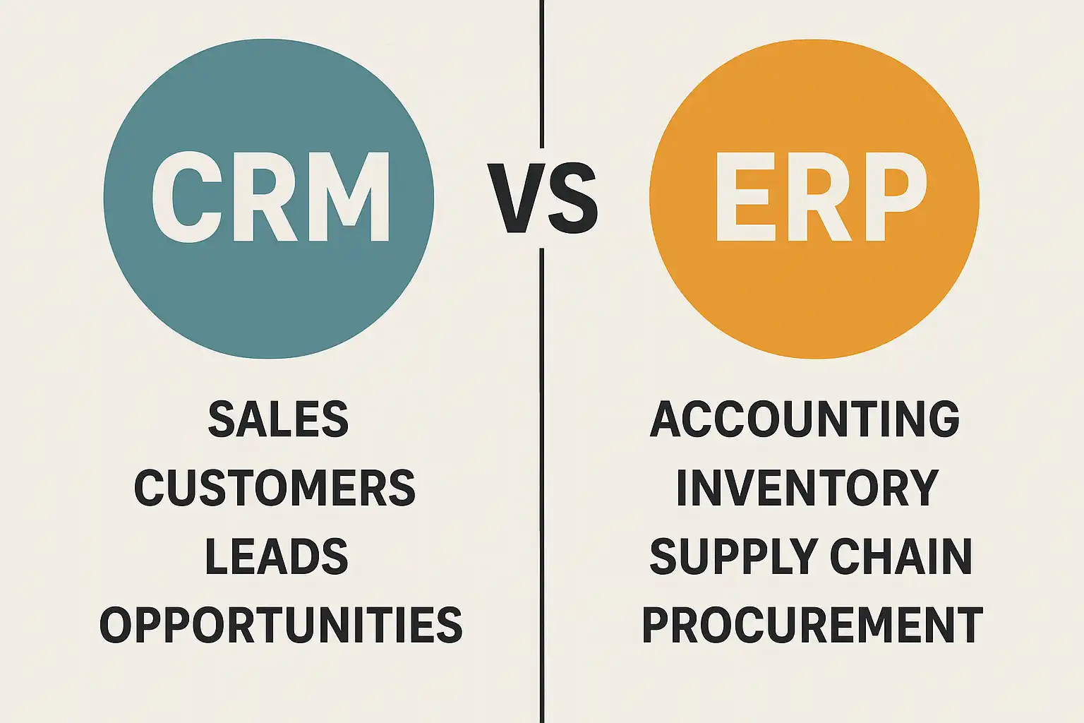 **CRM(客户关系管理)**是以客户为中心的信息化系统,强调跟踪销售线索,维护老客户,提高成交率和复购率,最终提升收入。 **ERP(企业资源计划)**则侧重于把采购、库存、人力资源、生产制造等内部流程打通,实现数据共享与自动化,让公司各部门协作更高效。