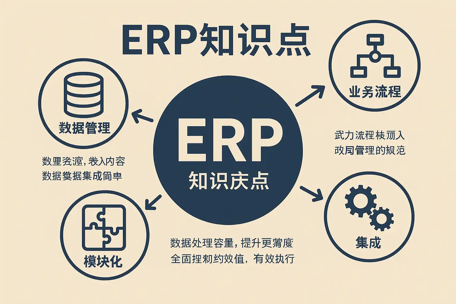 典型的ERP系统包含以下核心模块,每个模块负责特定业务功能,通过数据共享实现无缝协作: