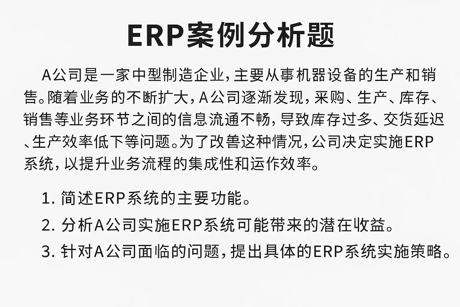 ERP案例分析题详解,如何高效应对考试挑战?