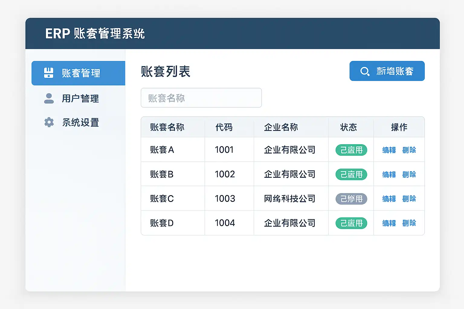 ERP(Enterprise Resource Planning,企业资源计划)账套管理系统是指将会计核算、财务报表生成、资产与库存等多项业务数据进行统一归档和处理的信息化平台。其主要目的是实现多核算单元(如分公司、子公司或不同项目组)的信息隔离与集中管控,同时保证数据的时效性、一致性及安全性。