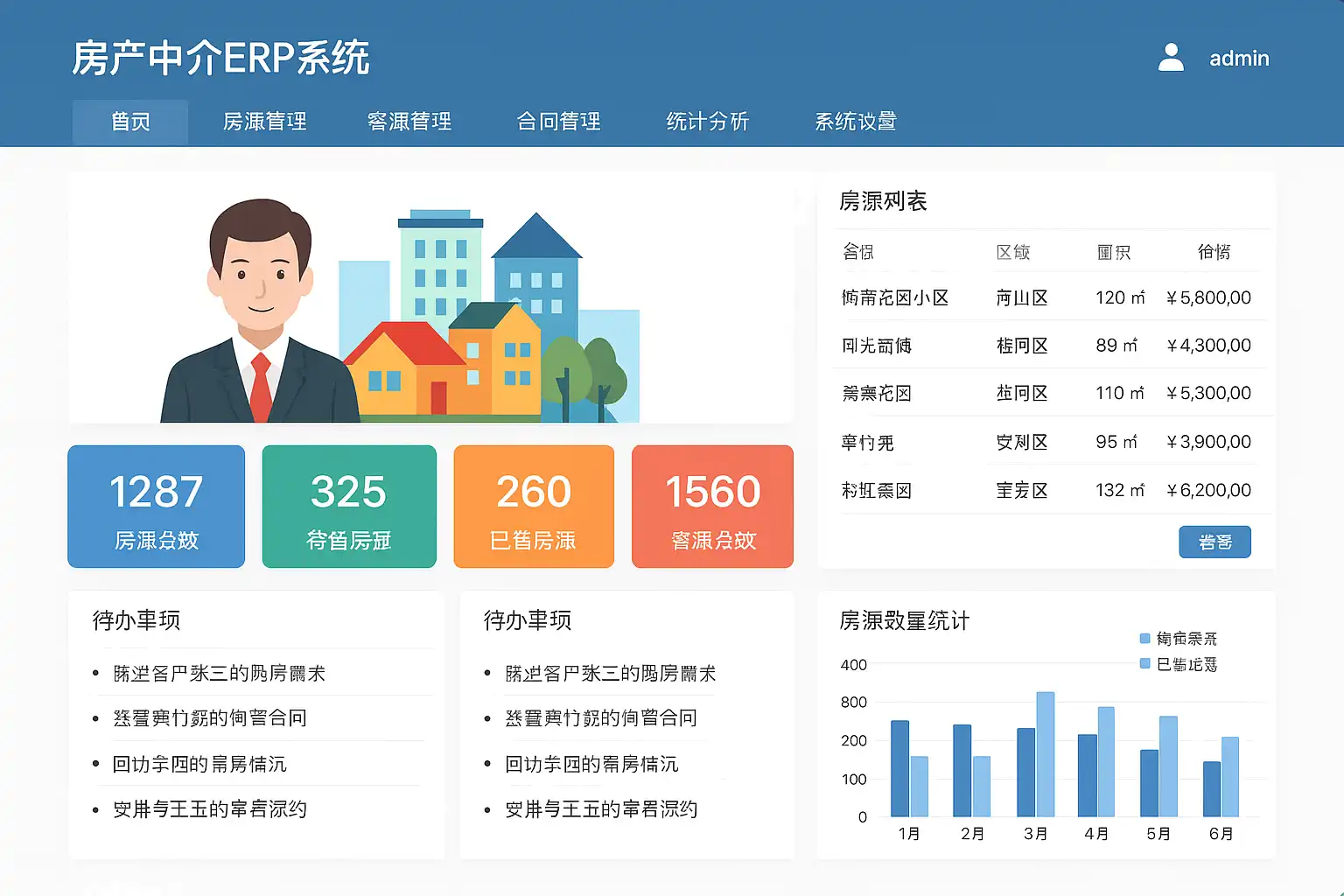 房产中介ERP(Enterprise Resource Planning,企业资源计划)系统,是为房地产经纪公司、中介机构等设计的综合性管理软件。它集成了客户关系管理(CRM)、房源管理、交易流程控制、财务结算、人事考勤等多模块功能,实现了业务全流程的信息化与自动化。