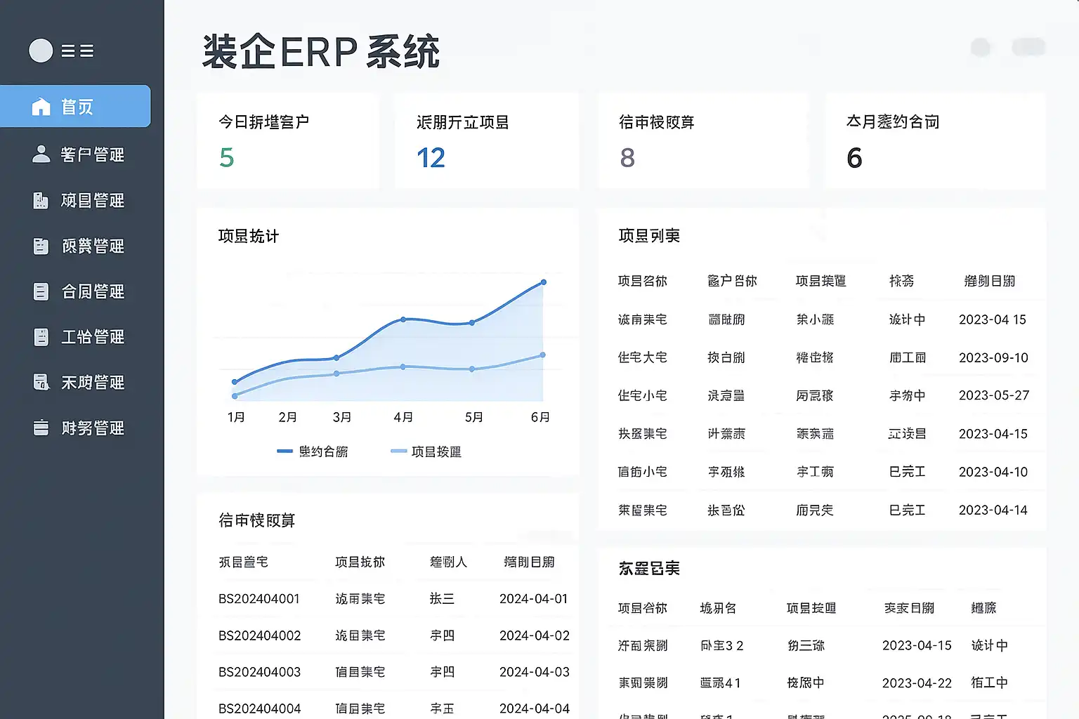 一套成熟的装企ERP系统通常由以下核心功能模块组成,每个模块针对行业痛点设定:
