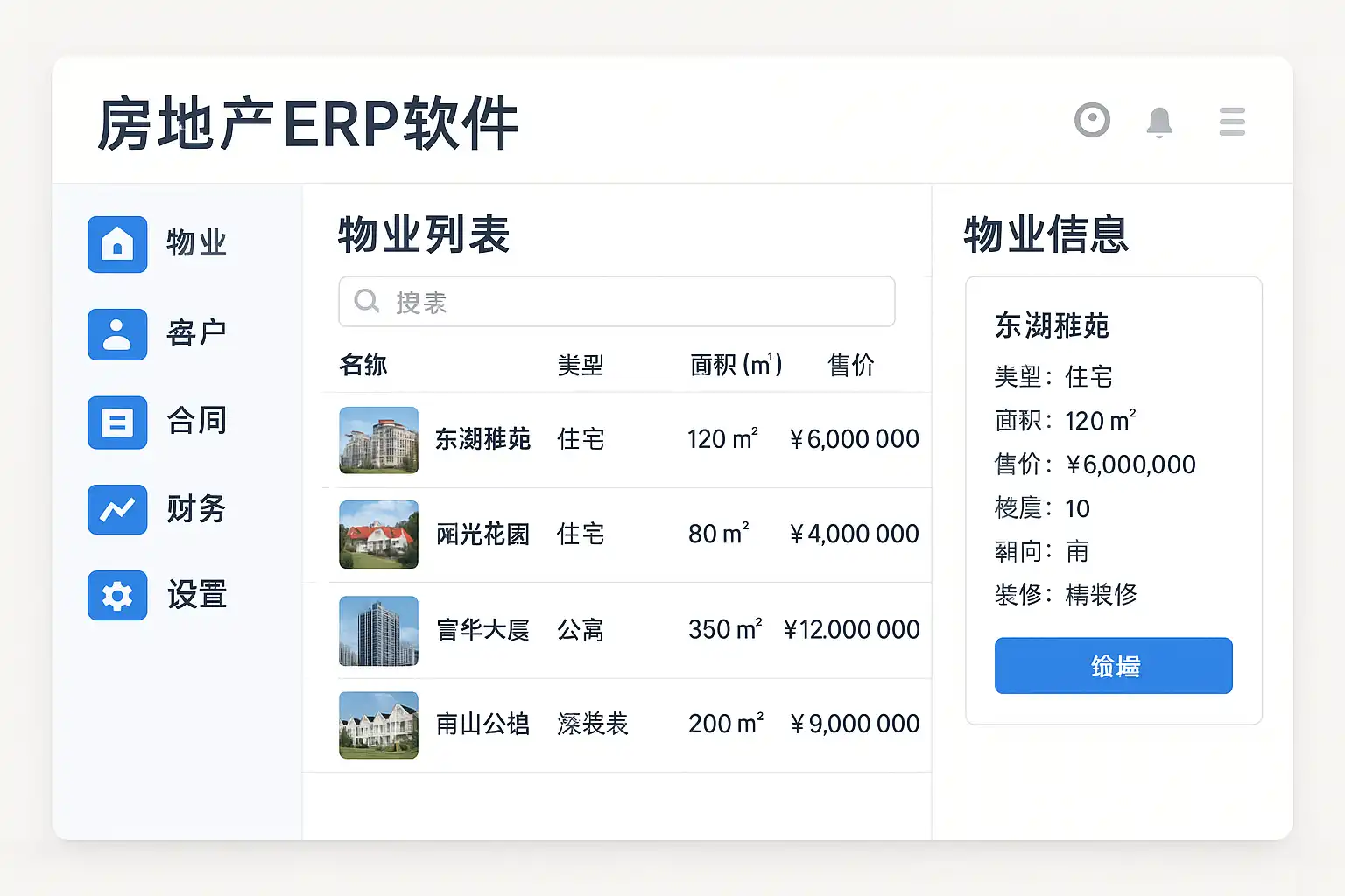 房地产ERP软件是一种专门为房地产行业设计的企业资源计划系统,主要用于整合项目管理、销售管理、财务管理和客户关系管理等核心业务。其核心功能包括:
