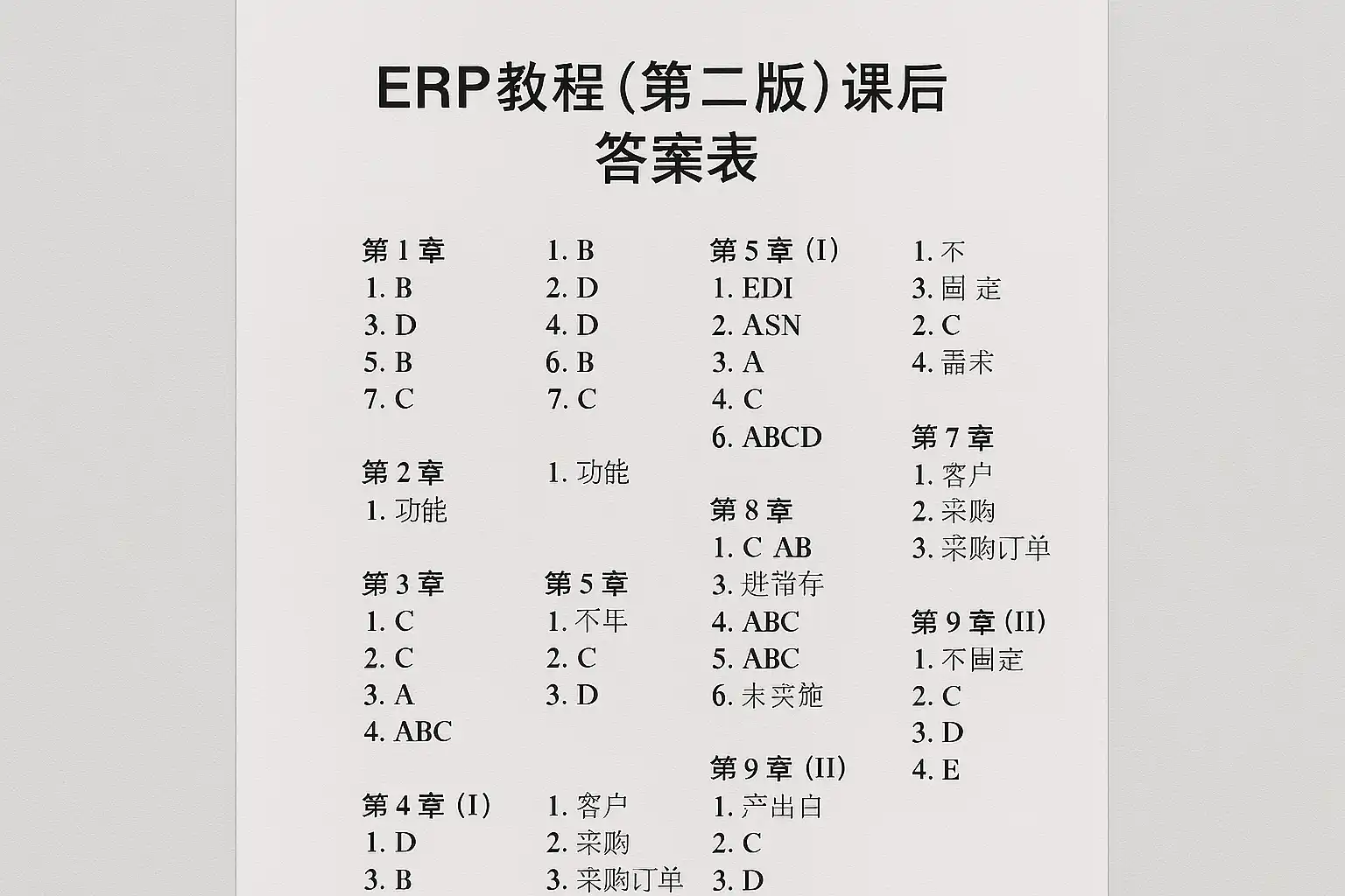ERP教程第二版课后答案解析,如何快速掌握关键内容?