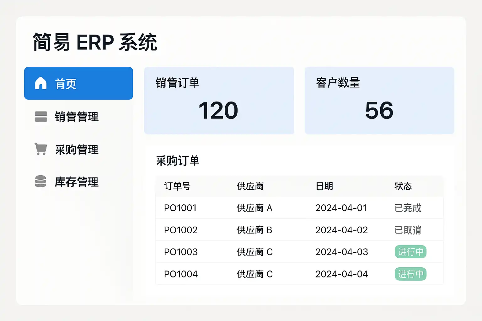 简单ERP系统通常包含以下核心功能: