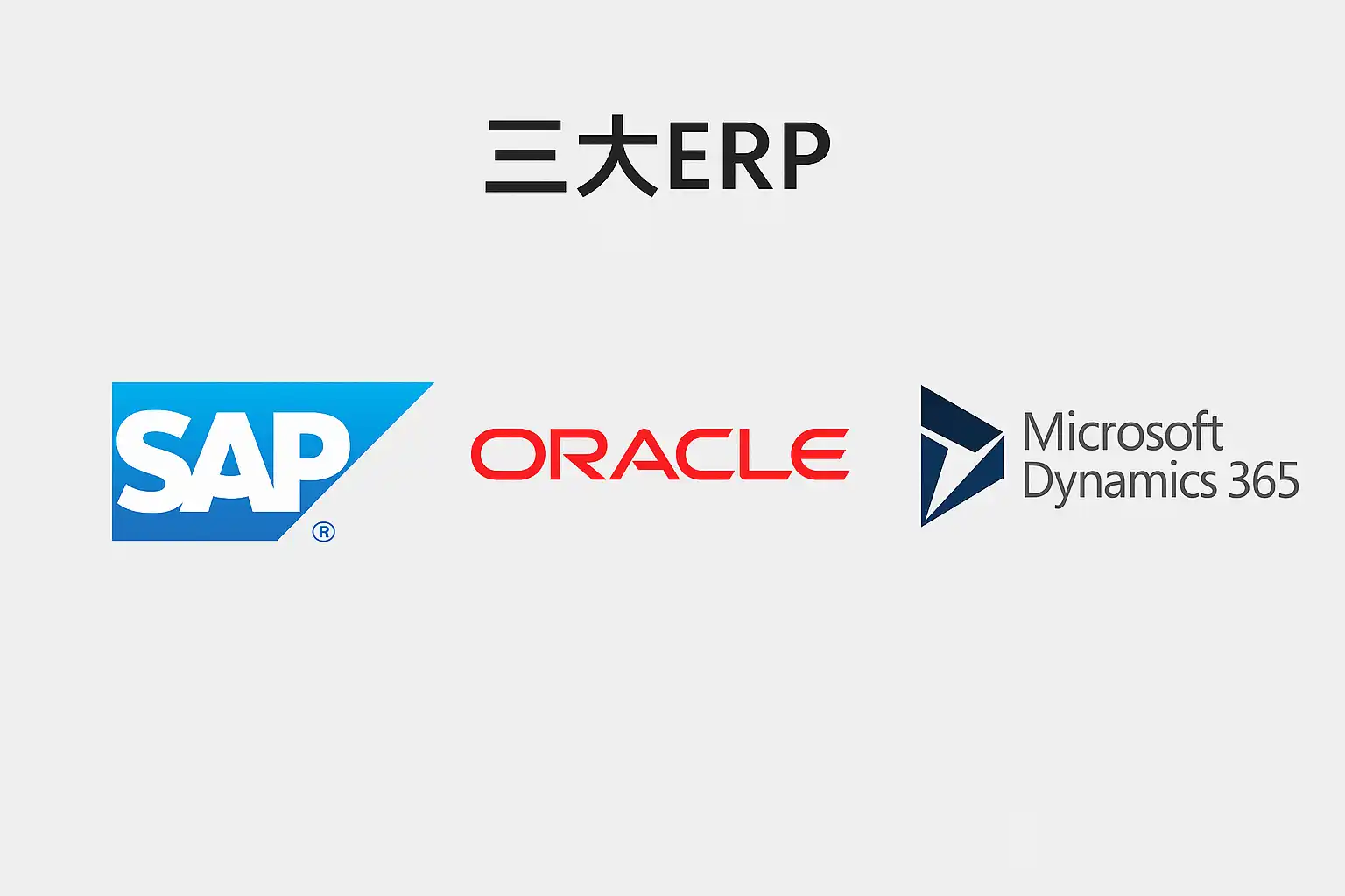 目前公认的全球三大主流ERP解决方案为SAP ERP、Oracle ERP Cloud和Microsoft Dynamics 365。下表对比了它们的核心特性: