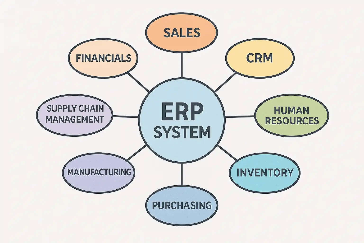 各大主流ERP如SAP ERP, Oracle ERP Cloud, 用友U8以及简道云ERP等,均在上述基础上,根据行业和规模增加细分子模块或定制功能。