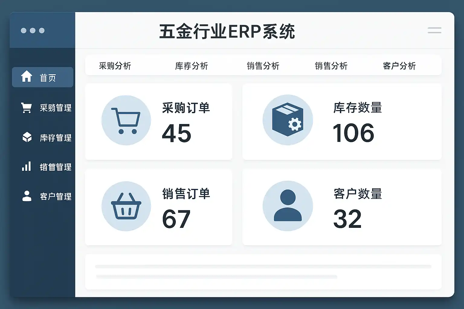 五金行业ERP系统是针对五金制造、贸易企业业务特点而开发的信息化管理平台,核心作用体现在:1、提升库存与采购管理效率;2、实现生产流程透明化;3、加强财务和成本控制;4、优化客户与供应链协同;5、助力企业数据决策与数字化转型。 其中,“提升库存与采购管理效率”尤为关键。五金企业常面临品类多、规格杂、出入库频繁等难题,传统手工或分散系统难以及时掌控库存状况,易导致缺货积压并增加运营成本。智能ERP系统通过条码/RFID自动采集数据,实现实时库存更新,使采购更精准,周转更高效,大大缓解库存压力。