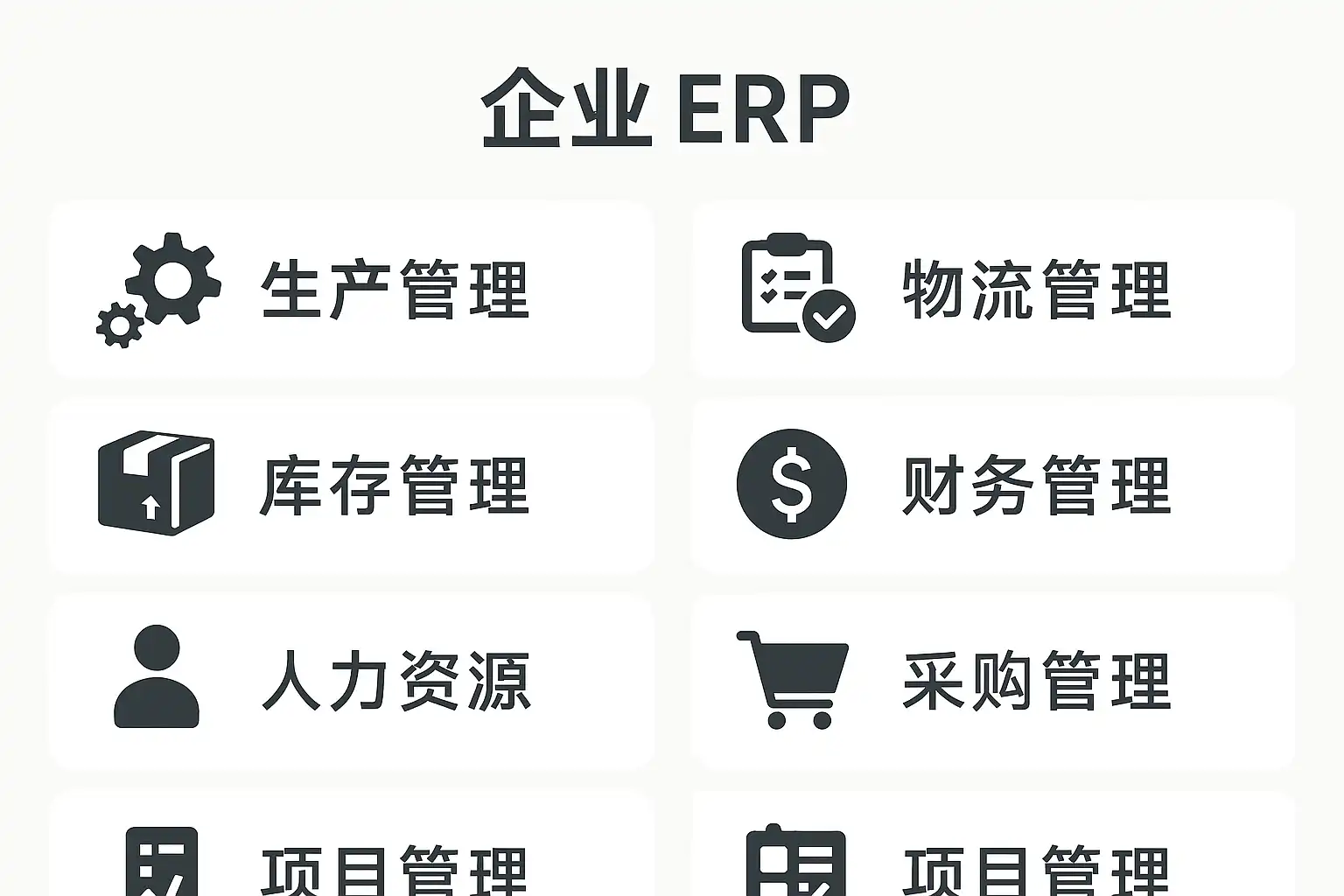 - 制造型ERP:涵盖生产计划、物料管理和质量控制,适合制造业企业。