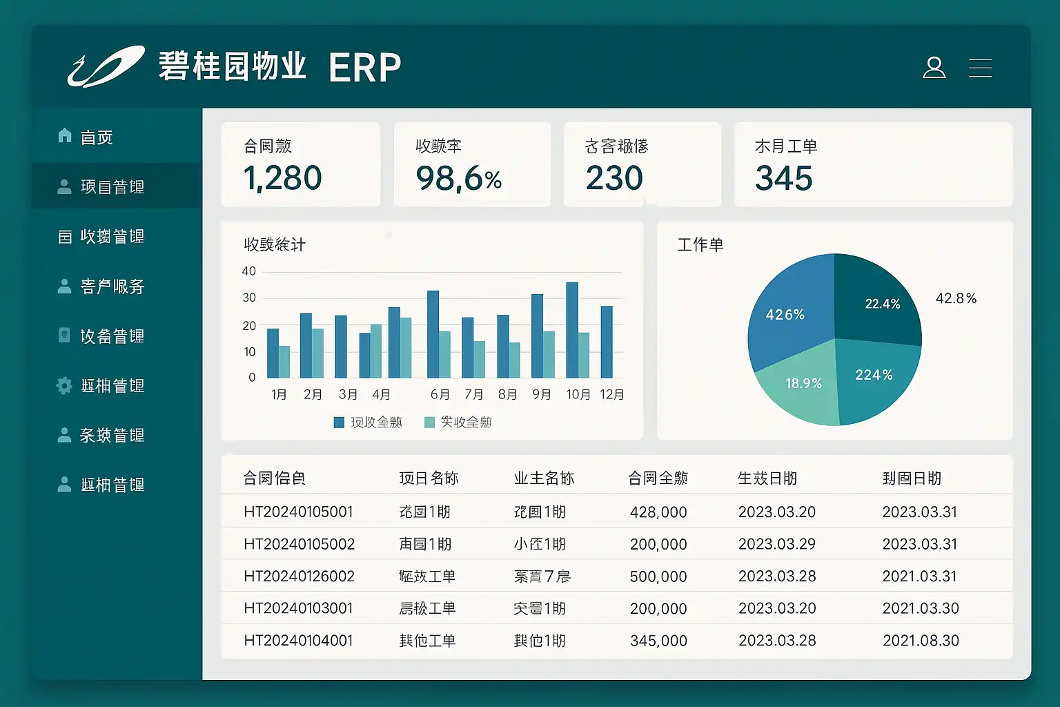 碧桂园物业ERP集成先进的数据分析模块,涵盖以下方面: