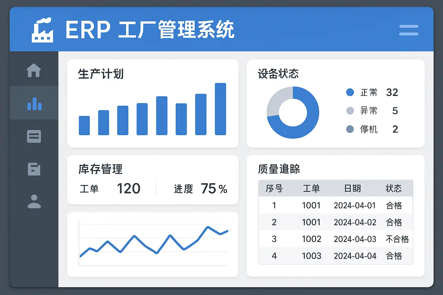 工厂管理系统ERP(Enterprise Resource Planning)是一种集成软件平台,用于协调和管理制造企业的各项资源。通过统一调度原材料、设备、人力和订单,ERP系统实现生产计划自动化和实时监控。案例:某制造企业通过实施ERP后,生产周期缩短了20%,库存周转率提高了30%。关键功能包括生产排程、物料需求计划(MRP)、质量控制等,有效降低了运营成本并提升了整体效率。