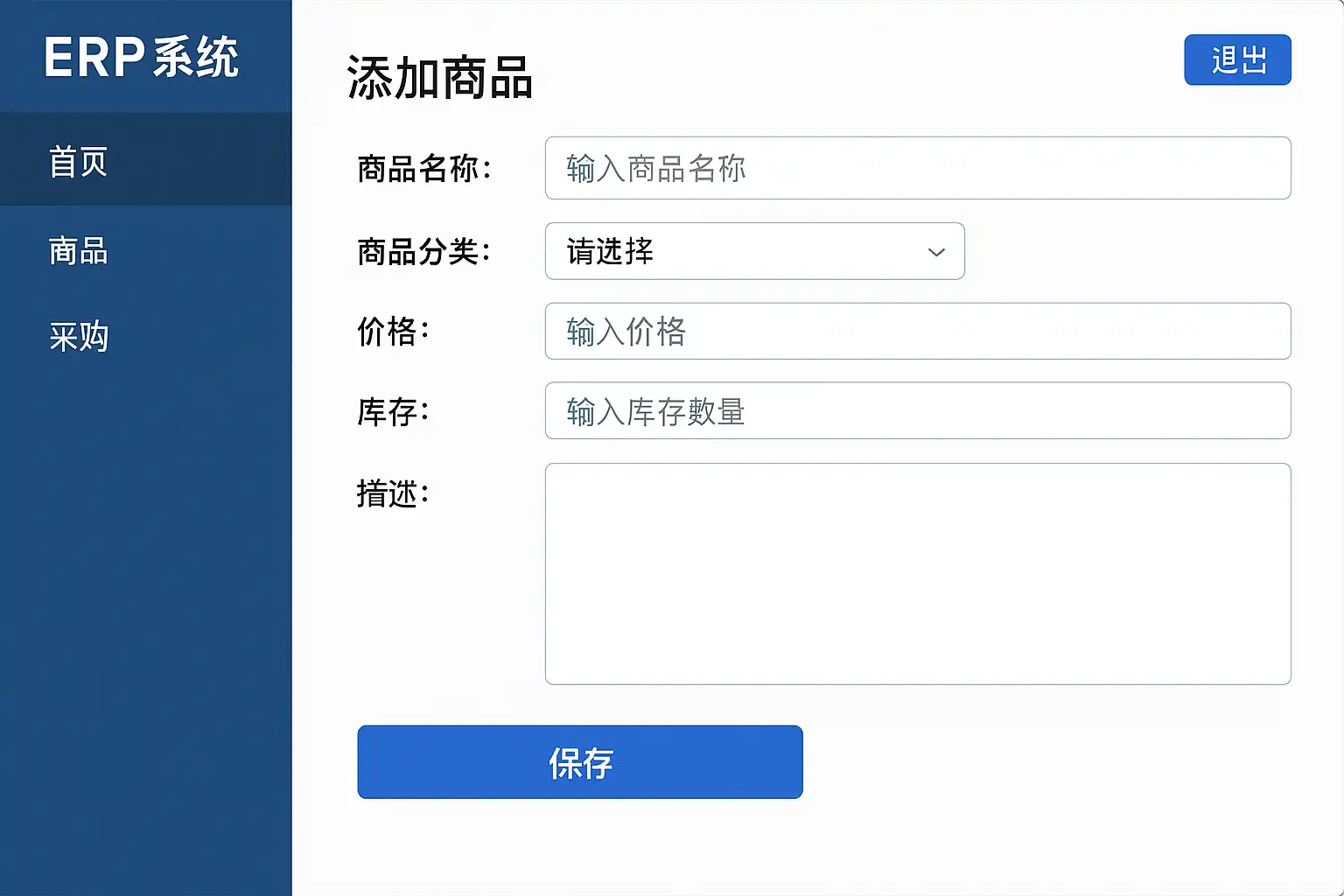 在ERP系统中,新增的商品会自动绑定到库存管理模块,实现数据联动。关键点包括: