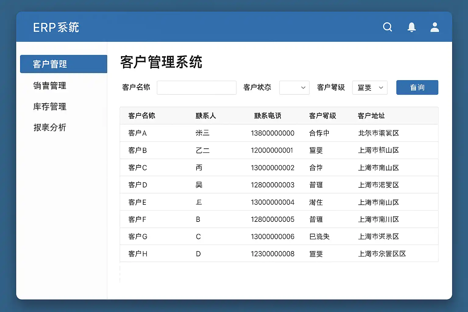 ERP(Enterprise Resource Planning,企业资源计划)中的客户管理系统(CRM模块)是集成于ERP大平台下的核心组成部分。它不仅仅是一个简单的联系人数据库,而是涵盖从销售线索跟进到售后支持全过程的数据流转和业务协同工具。