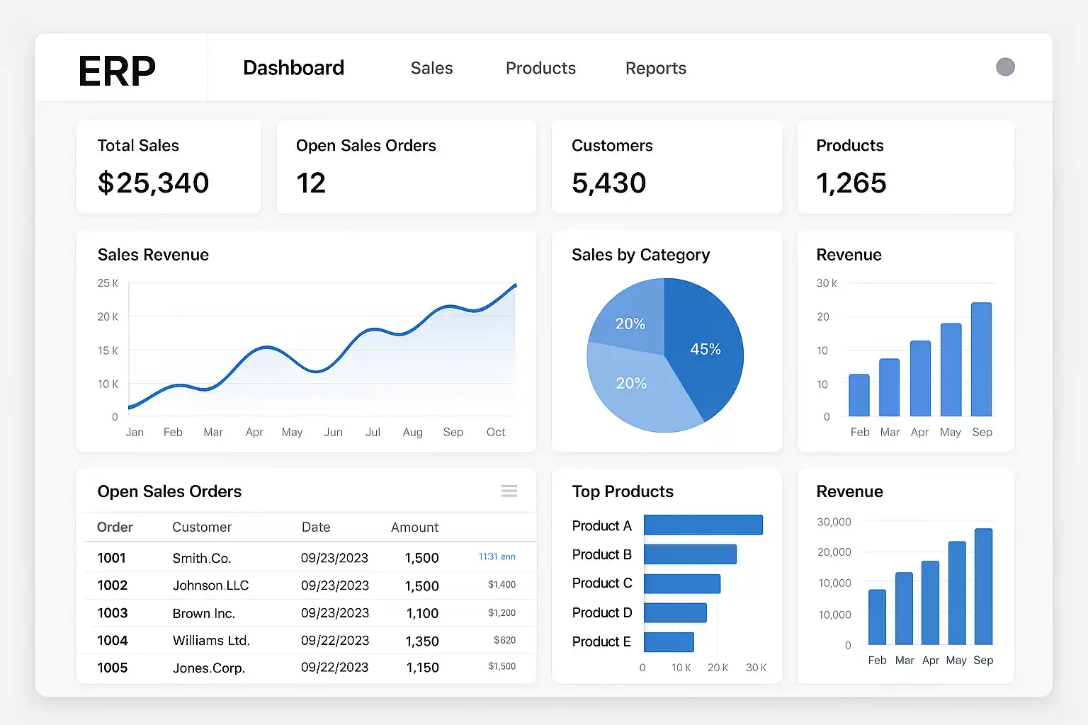 ERP系统内置强大的数据分析和报表工具,通过整合多部门数据,实现全面洞察。例如: