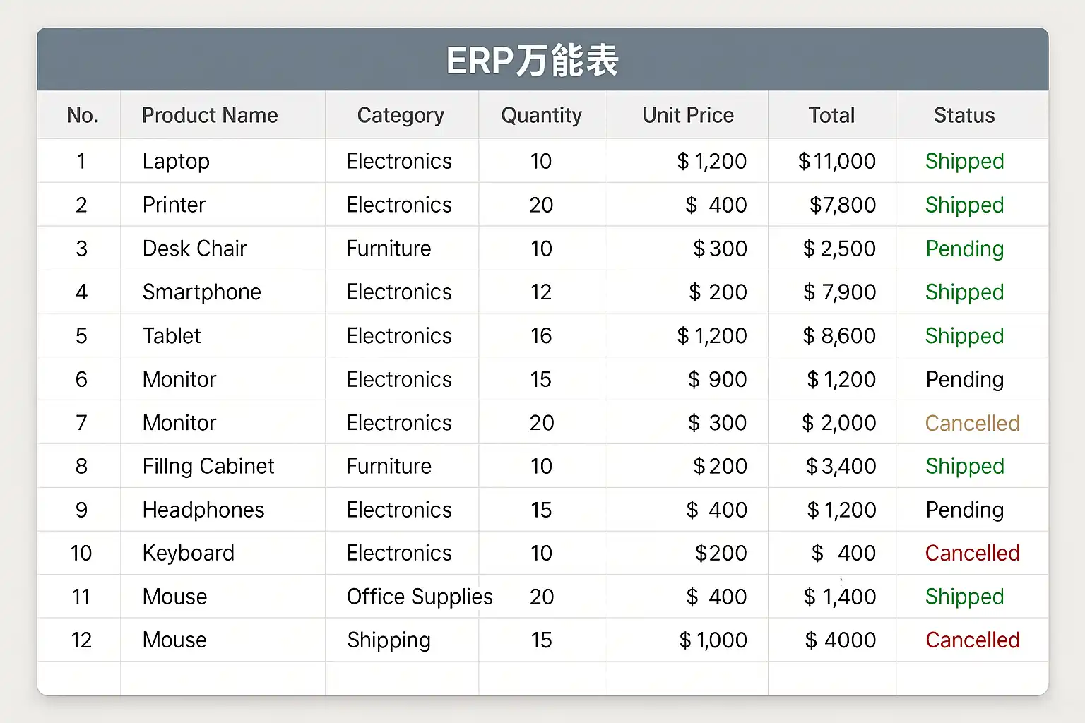《erp万能表》