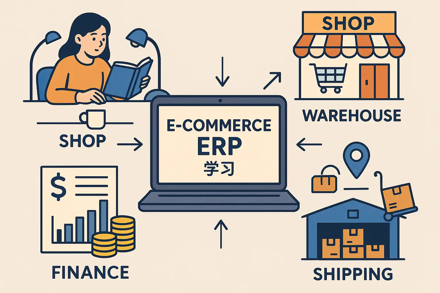 - 了解电商ERP的基本概念和功能模块,如库存管理、订单处理和财务结算。