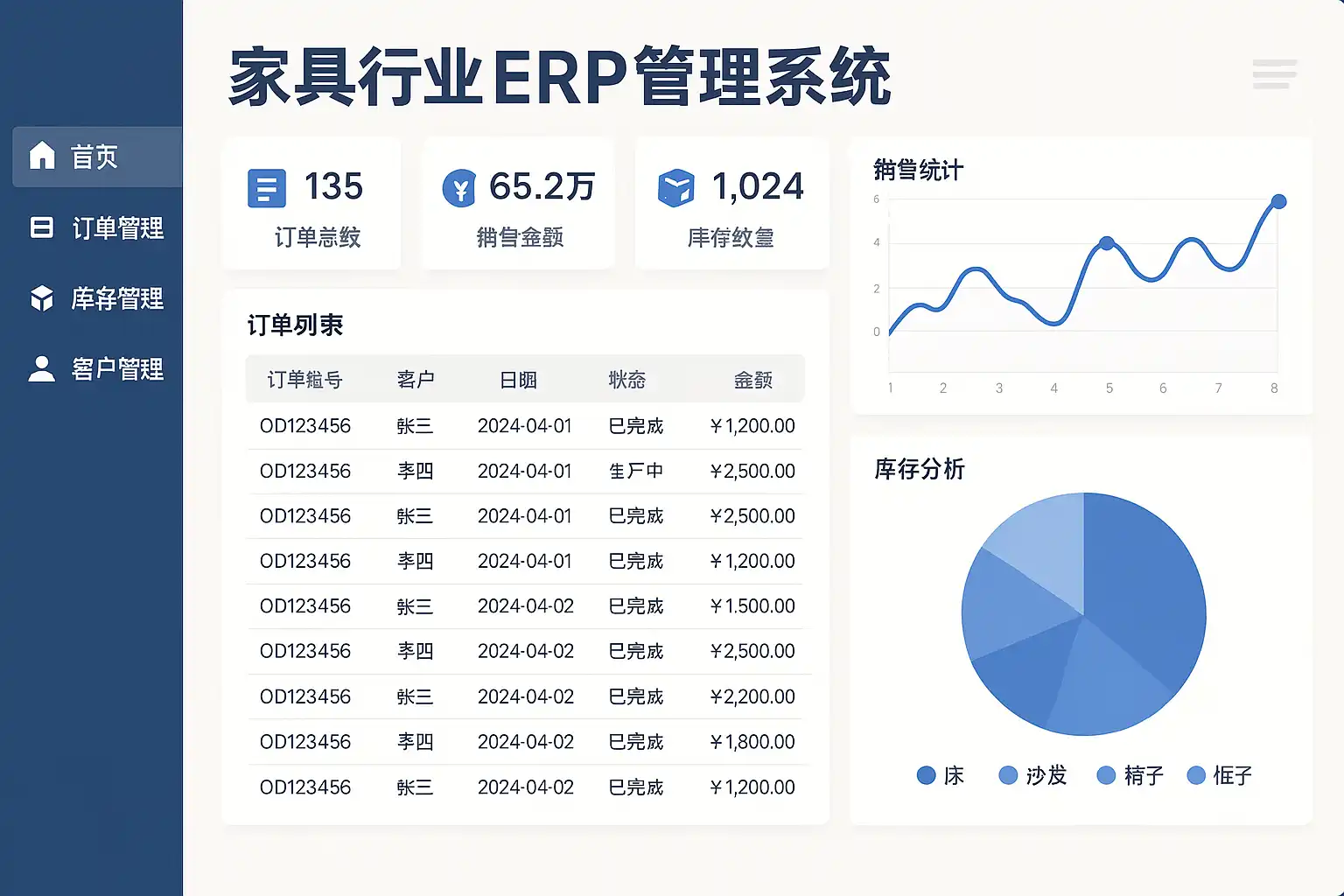家具行业由于产品类型丰富、工艺复杂,对生产计划与库存调度要求极高。ERP(Enterprise Resource Planning)作为集成信息化平台,为家具企业提供如下核心功能: