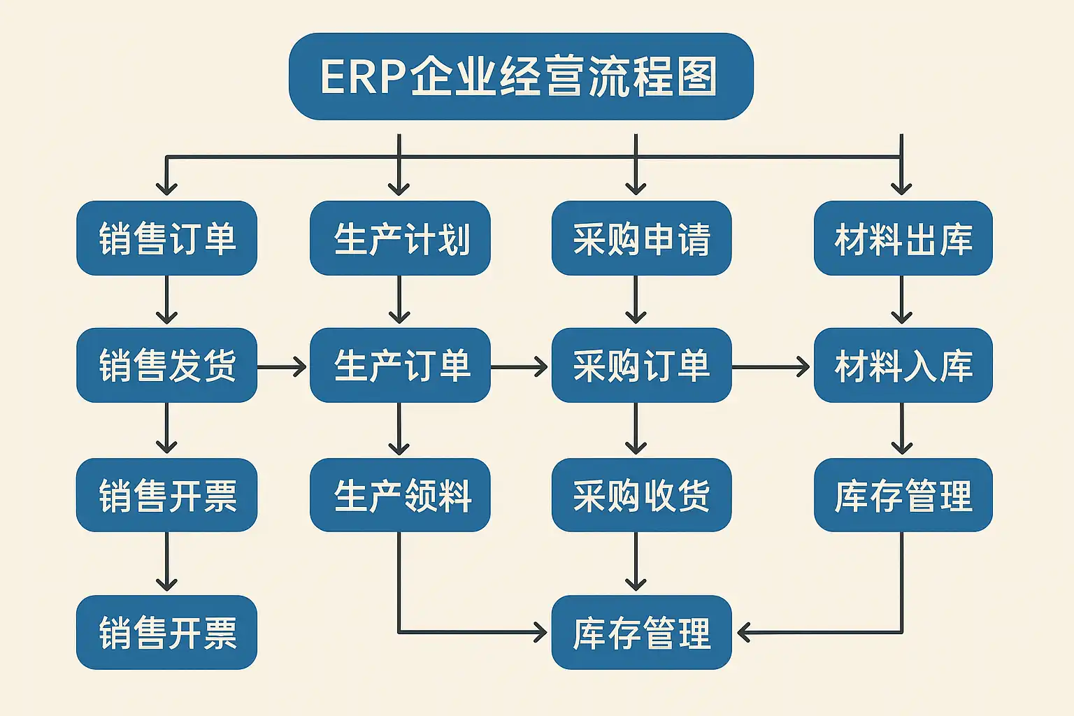 作为一名初次接触ERP系统的企业管理者,我想了解ERP企业经营流程图到底包含哪些核心部分?这些组成部分如何帮助我更好地理解和优化企业经营流程?