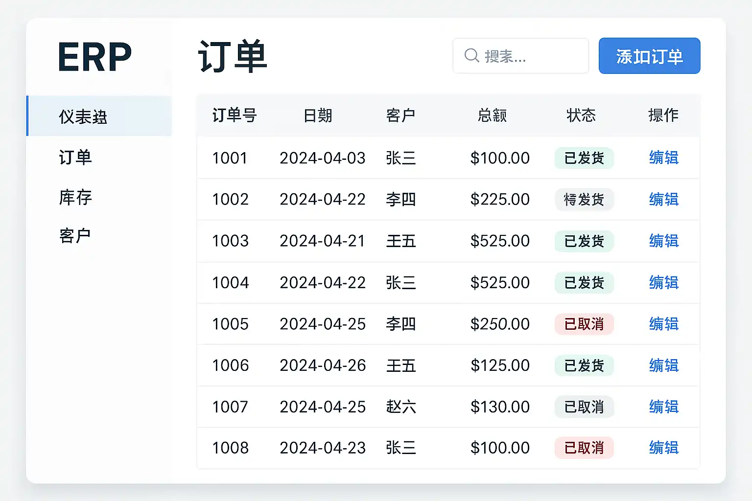 | 订单录入 | 多渠道快速录入客户或供应商订单,包括批量导入和API对接 |