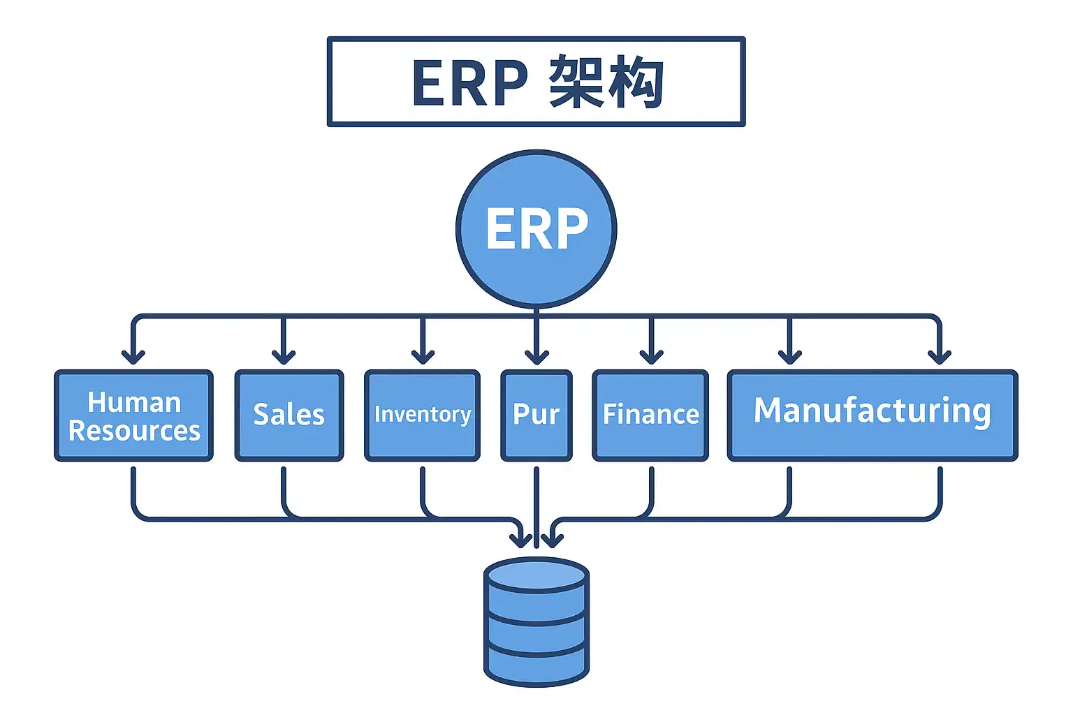 我最近在学习企业资源计划(ERP)系统,但对ERP架构的具体组成和作用不太清楚。能详细解释一下ERP架构是什么,以及它包括哪些核心组件吗?