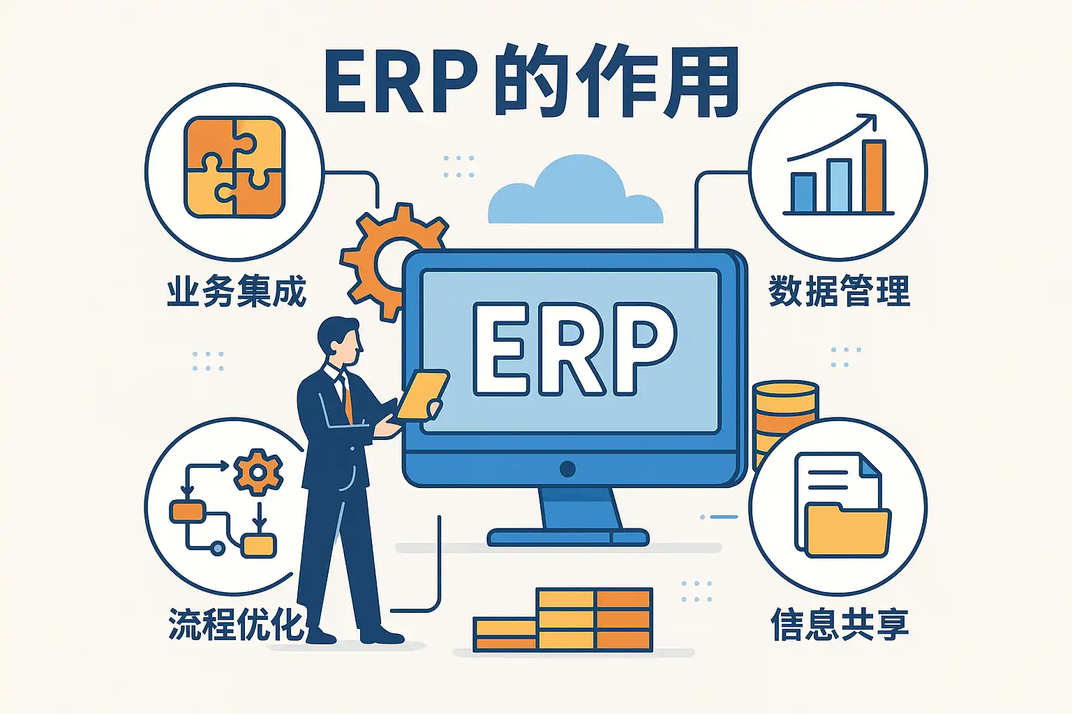 ERP(Enterprise Resource Planning,企业资源计划)是一种集成型信息管理系统,通过统一的平台对企业不同部门的数据和流程进行协调和整合,实现对人力资源、财务管理、供应链、生产制造等多方面的精细化管控。
