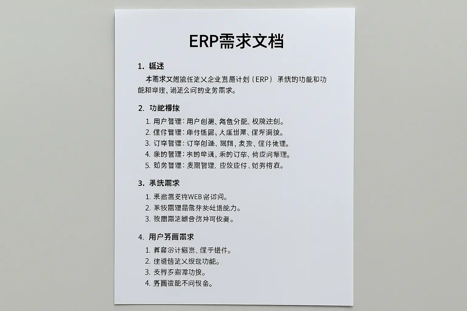 ERP需求文档包括哪些核心内容?