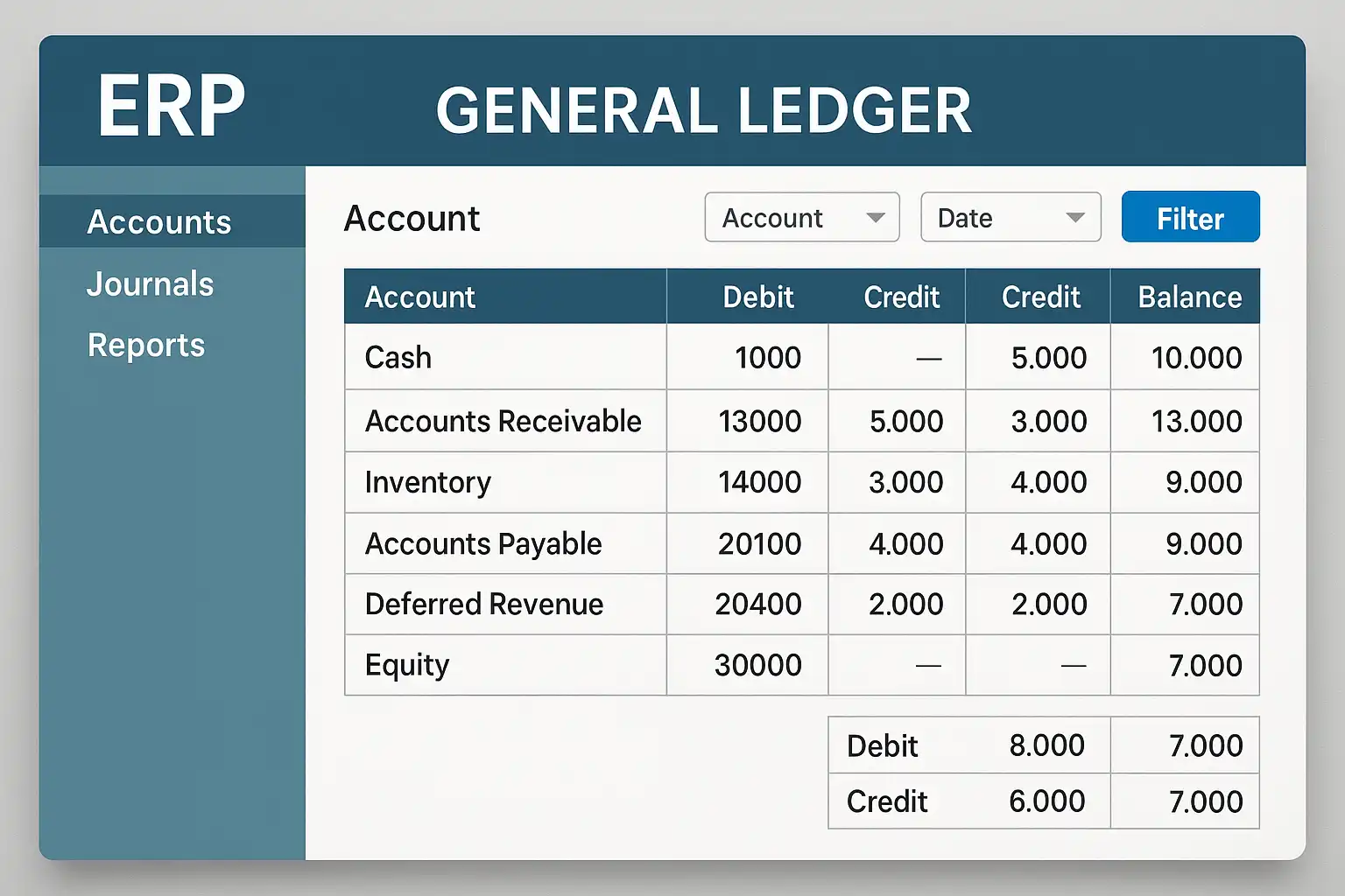 ERP(Enterprise Resource Planning)中的“总账”是指以会计准则为基础,对所有经济业务统一归集和反映,实现财务信息集中处理和多维度分析的核心模块。ERP系统的总账功能涵盖凭证处理、科目管理、期末结转、对账调平以及各类报表生成等,是衔接各业务模块的数据枢纽。