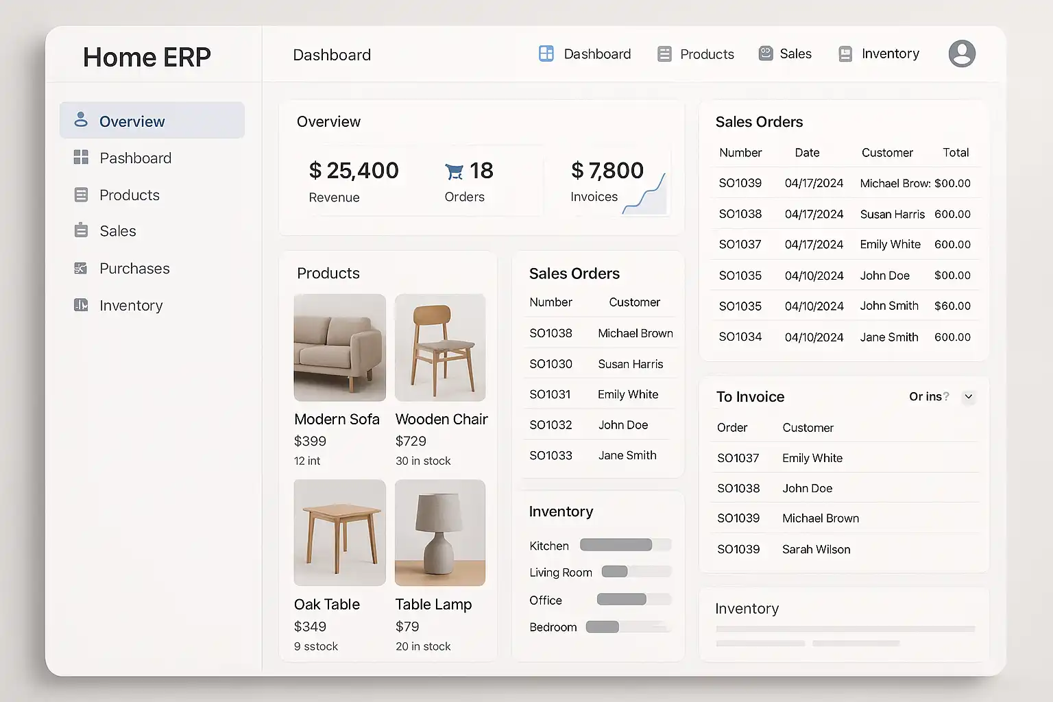 - 生产计划:合理调配资源,提升生产效率。 例如,一家中型家具制造企业通过实施家居ERP,实现库存周转率提升15%,订单处理时间缩短30%。这些功能协同作用,有效提升整体运营效率。