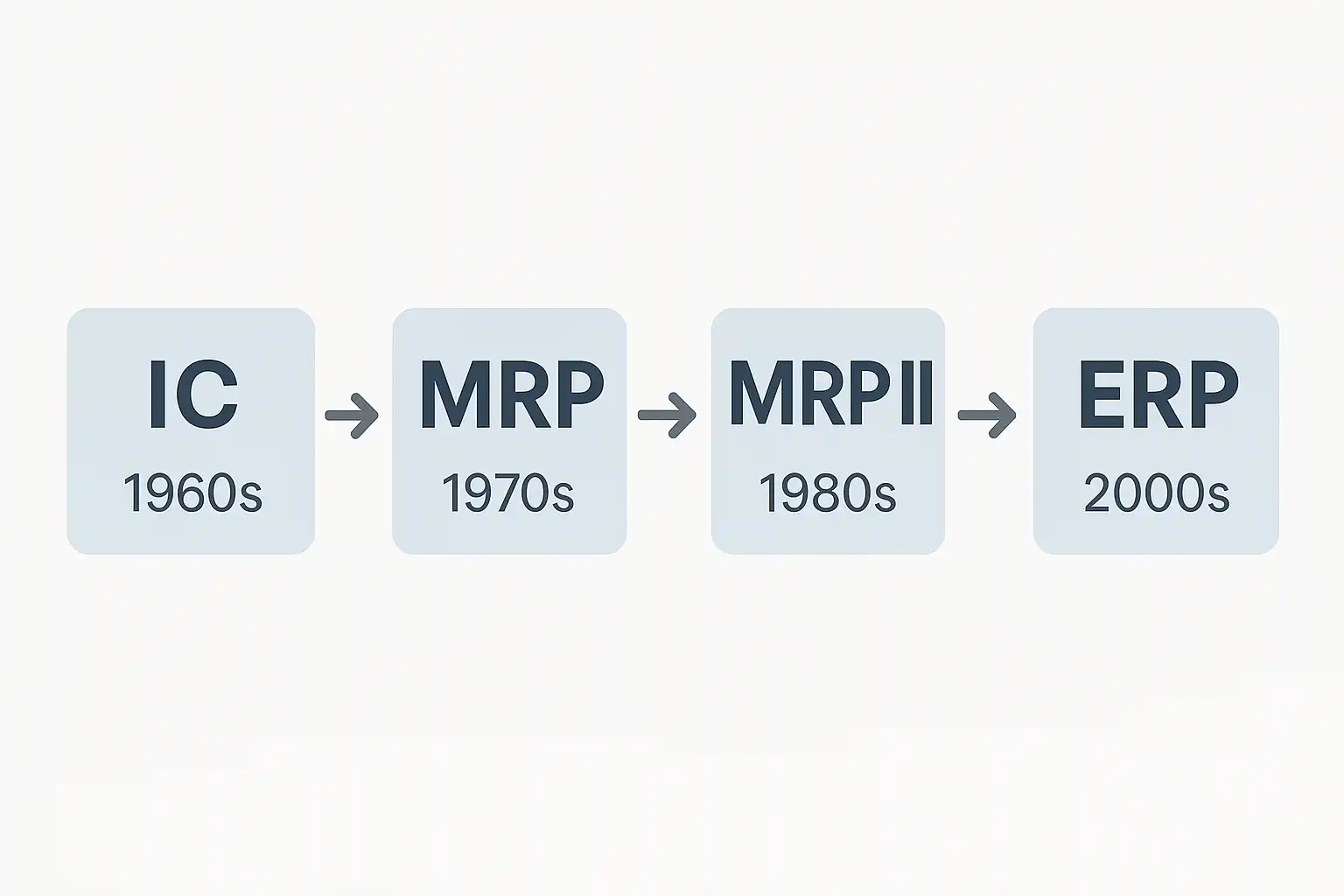 | MRP II | 制造资源计划,涵盖生产+采购+库存 | 1980s |