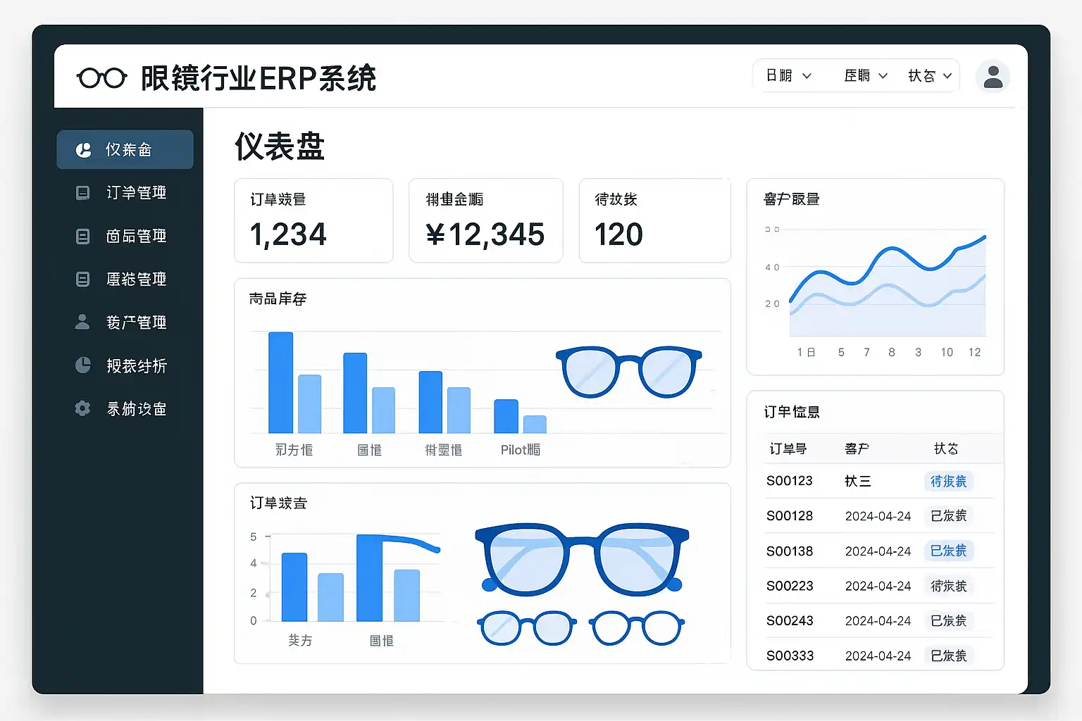 - 库存管理:实时跟踪镜片、镜框等库存,避免缺货或积压。