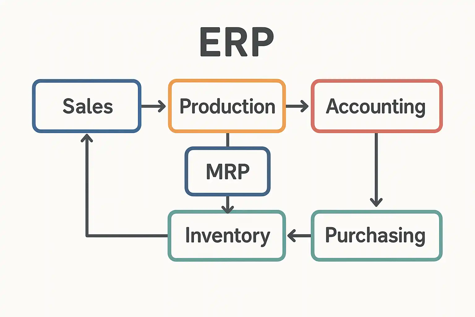 - 生产计划下达→领料单生成→车间加工反馈→成品入库