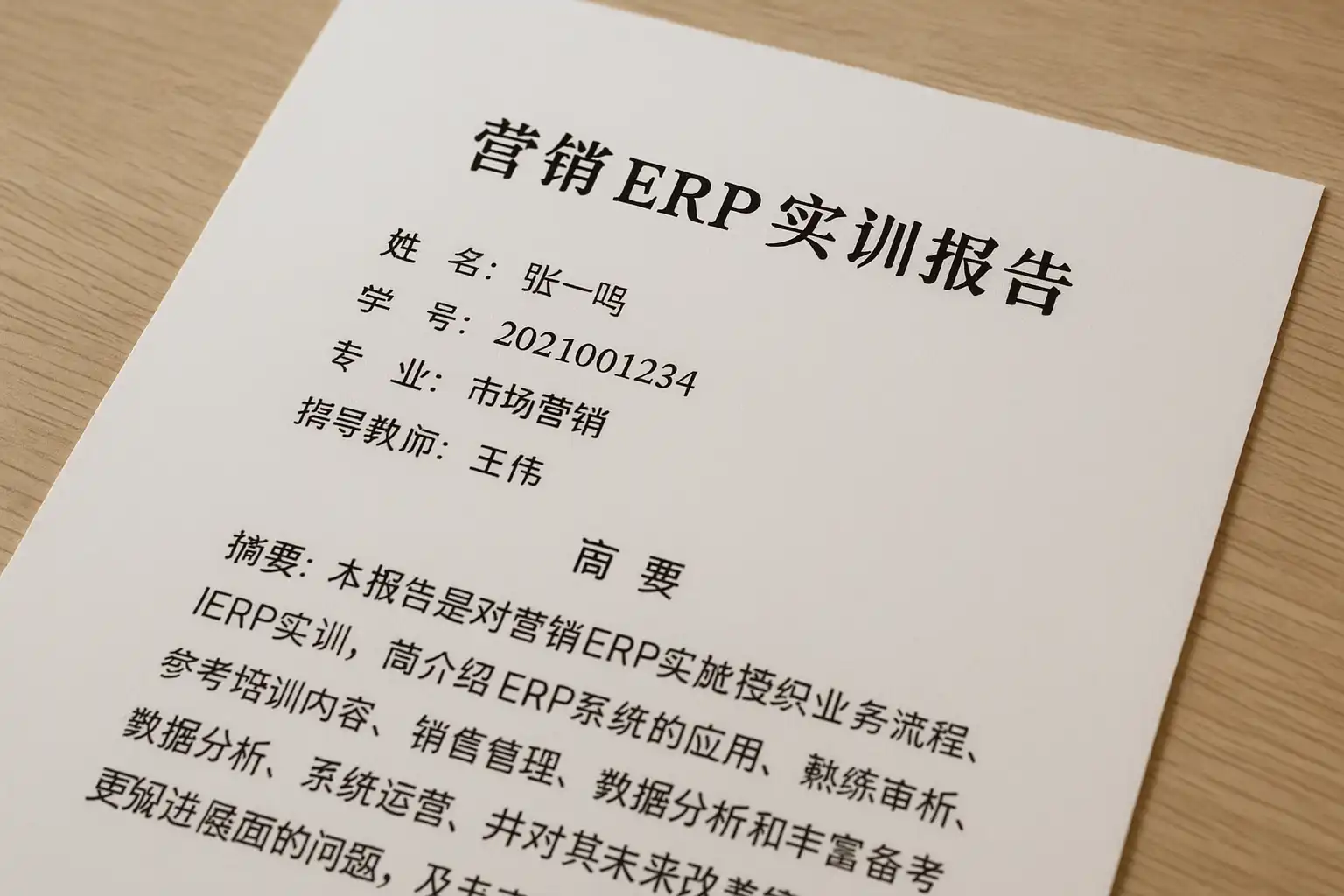 一份完整的营销ERP实训报告应包含以下内容结构: