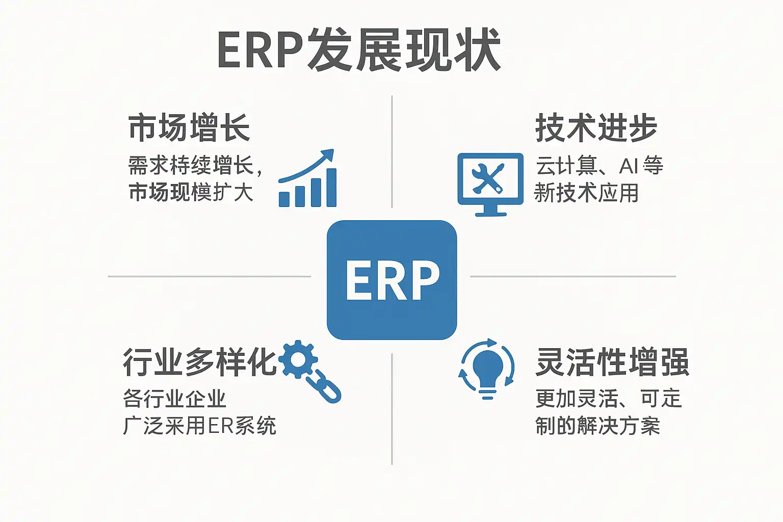 我最近在了解企业资源计划(ERP)系统,听说它发展很快,但具体体现在哪些方面呢?有没有什么具体的数据或者趋势可以说明当前ERP的发展现状?