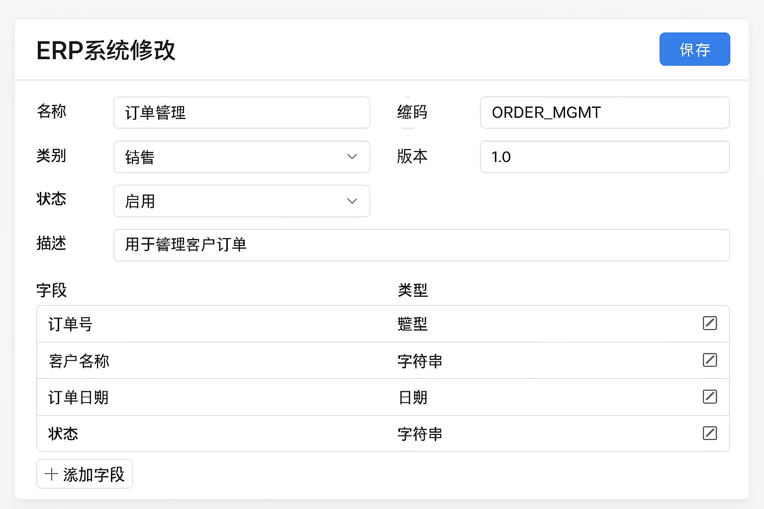 - 新增/编辑字段