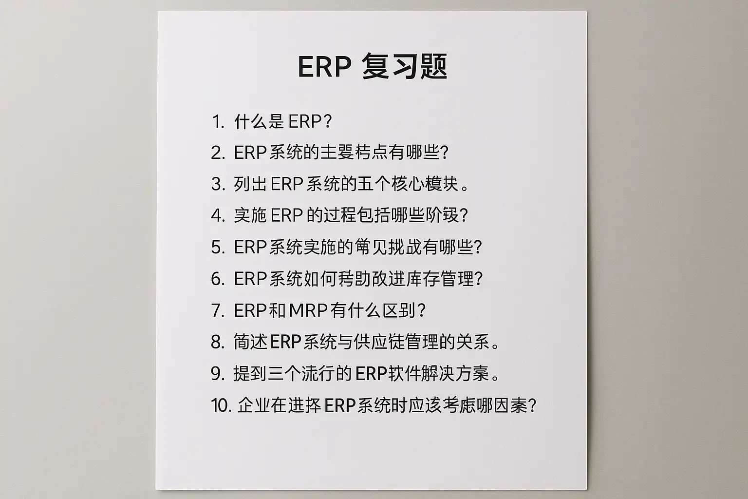 一、ERP复习题核心内容概览