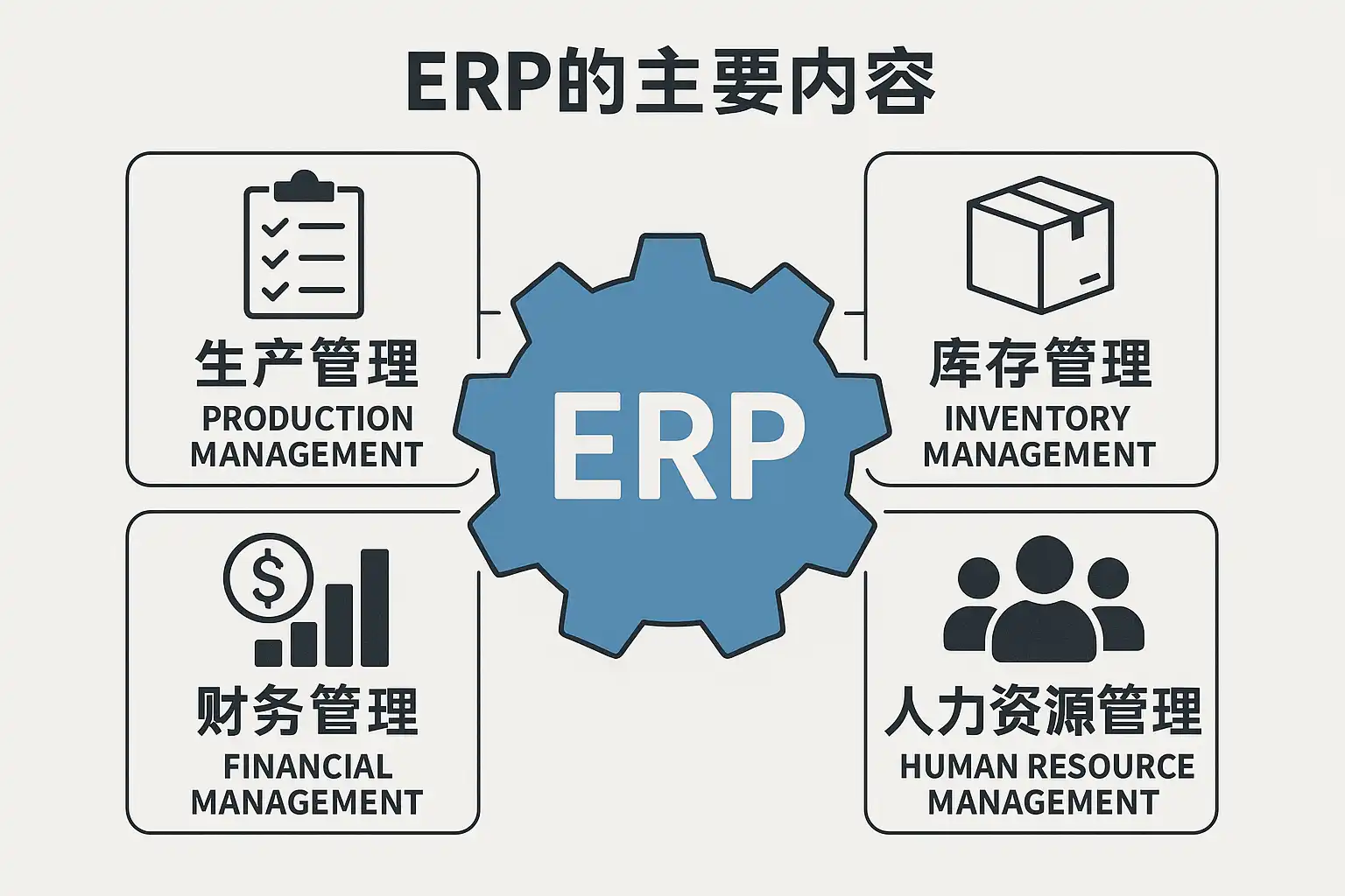 ERP(Enterprise Resource Planning,企业资源计划)是一种集成化管理平台,通过统一的信息系统协调企业内部各项资源,实现高效运营。其主要内容包括以下几个方面: