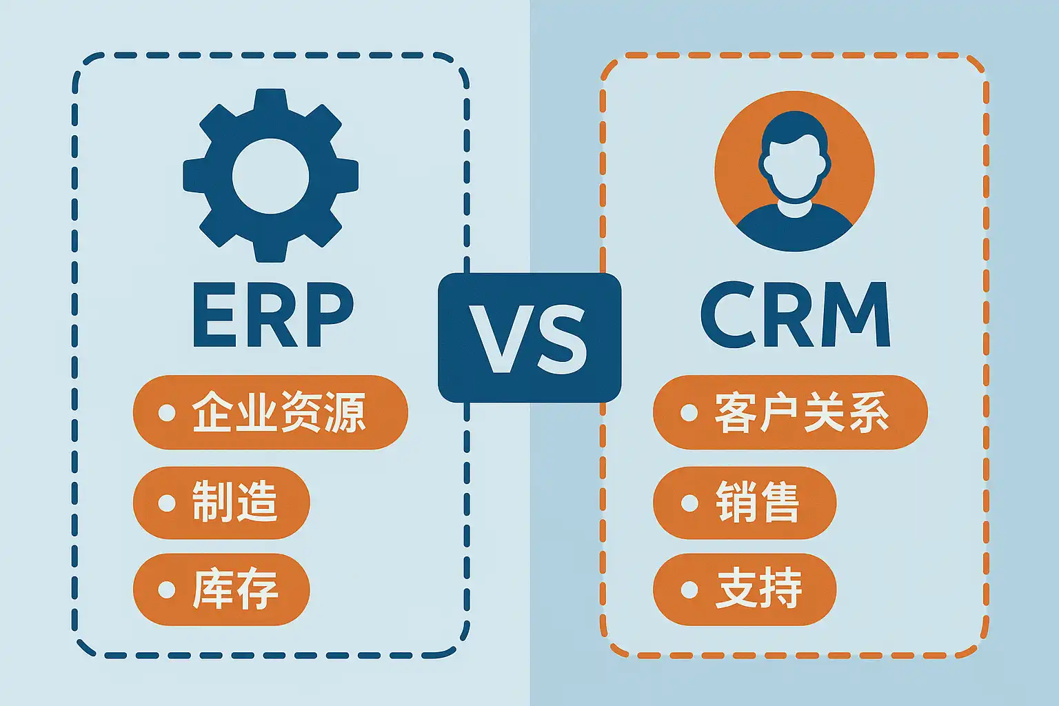 ERP(Enterprise Resource Planning,企业资源计划)和CRM(Customer Relationship Management,客户关系管理)是当代企业数字化转型中两大核心系统。二者有明显的侧重点和功能区别,但也存在紧密联系。