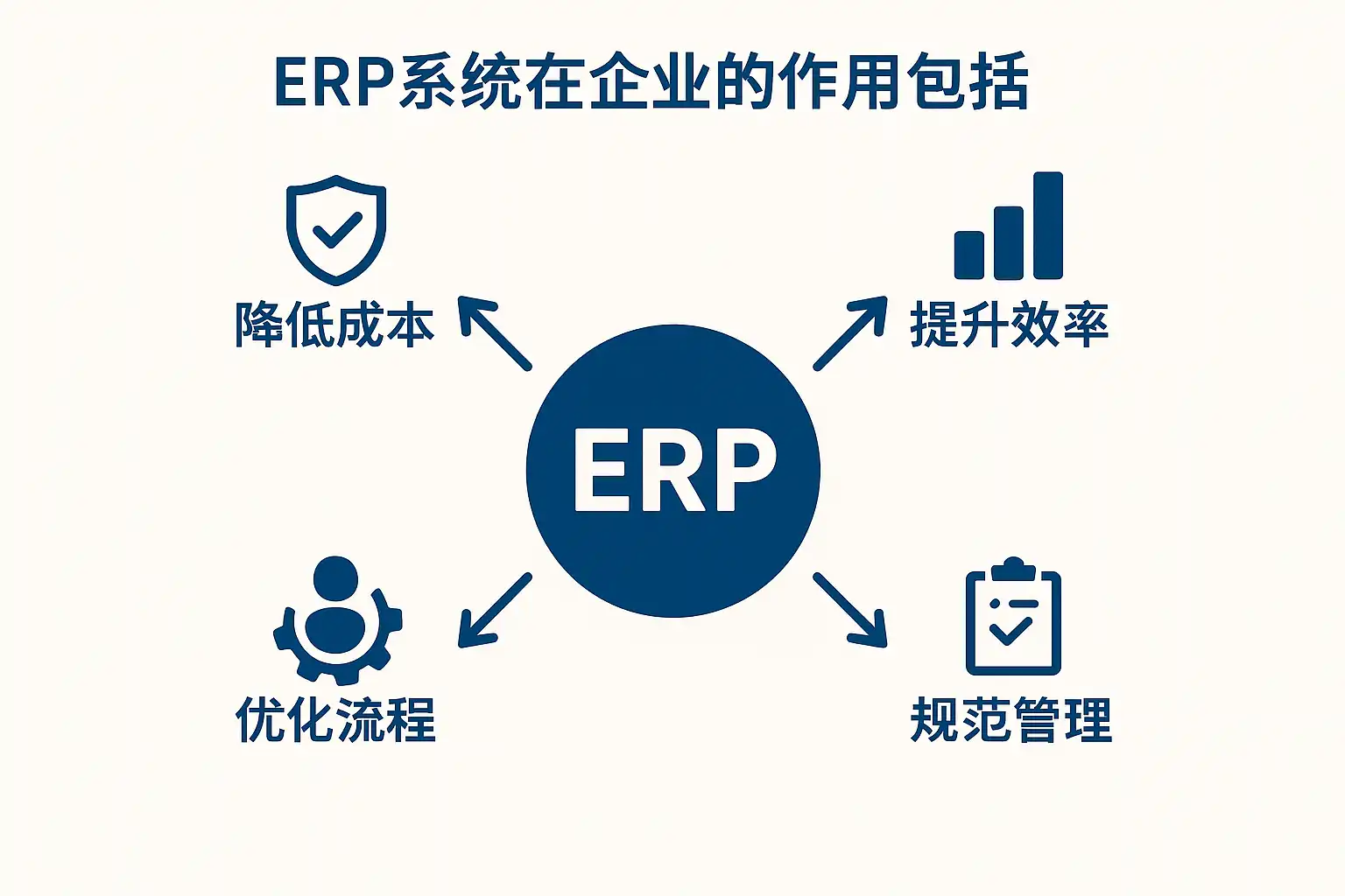 ERP系统在企业中的主要作用包括整合企业资源、优化业务流程和提升管理效率。具体表现为: