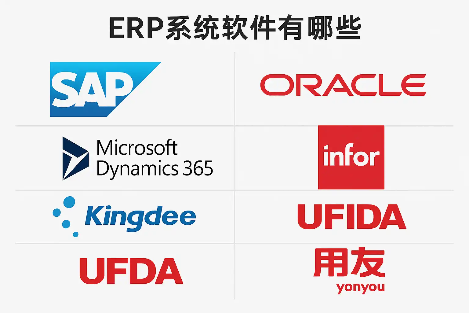 - 国际品牌如SAP, Oracle, Microsoft Dynamics等:适合资金实力强、有国际业务或复杂流程的大型集团。
