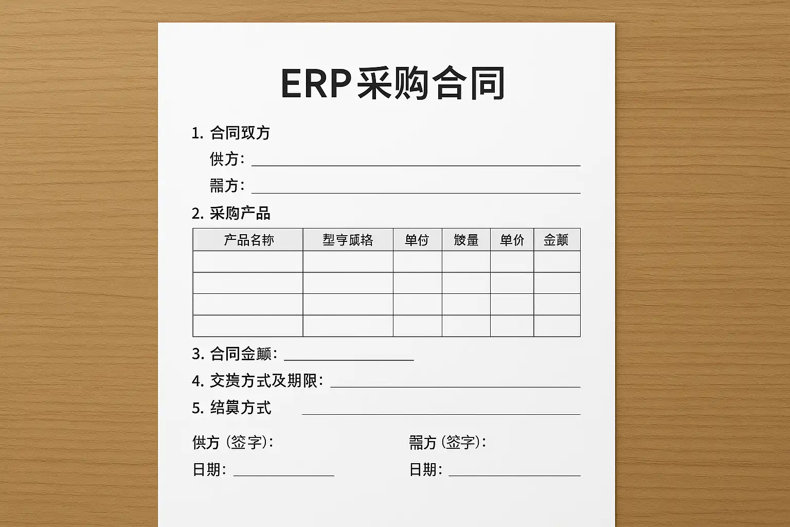 ERP采购合同定义 ERP(Enterprise Resource Planning,企业资源计划)系统中的采购合同,是指企业在借助信息化手段管理与供应商之间物资或服务采购所签署的具有法律约束力的协议。该协议涵盖了物品类型、数量、价格、交付时间和付款方式等重要条款,并通过ERP平台实现全流程电子化和规范化管理。