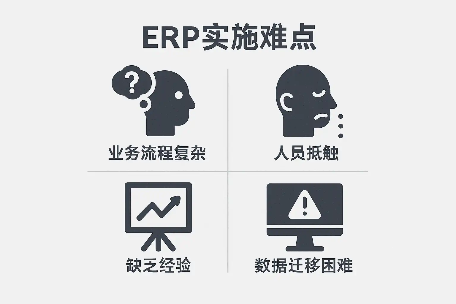 作为一名企业管理者,我想了解ERP实施过程中最常遇到的难点有哪些?这些难点会对项目进展产生怎样的影响?