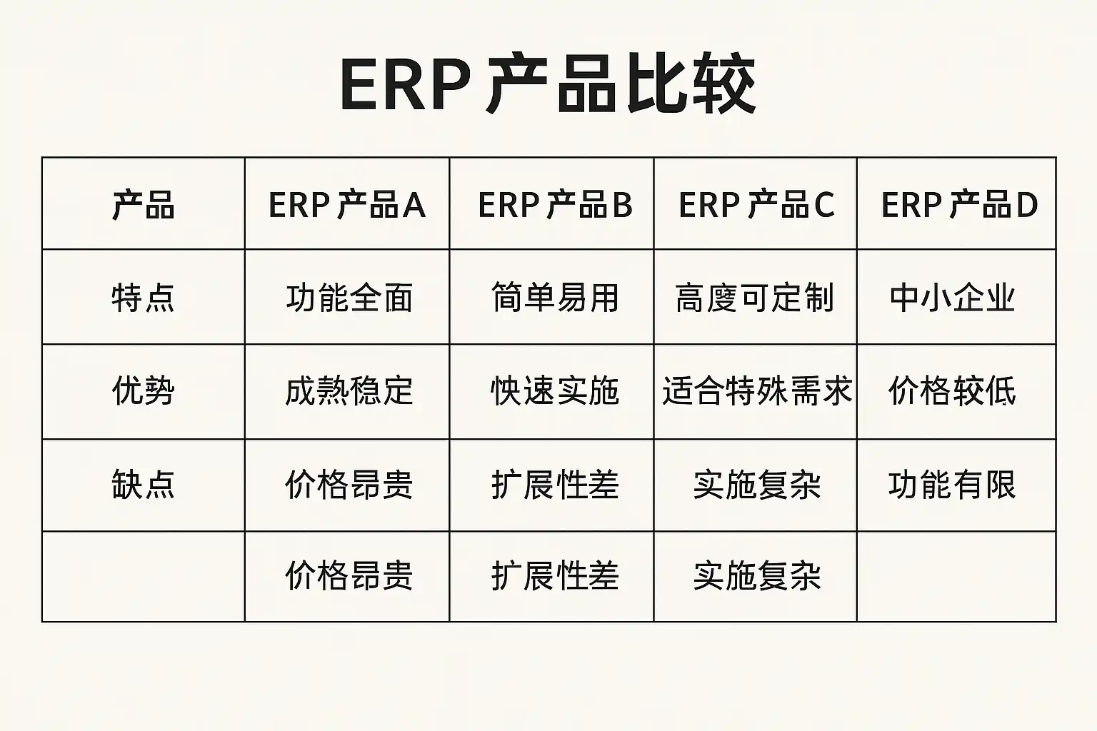 以下表格展示了几款典型ERP系统在主要模块上的支持情况: