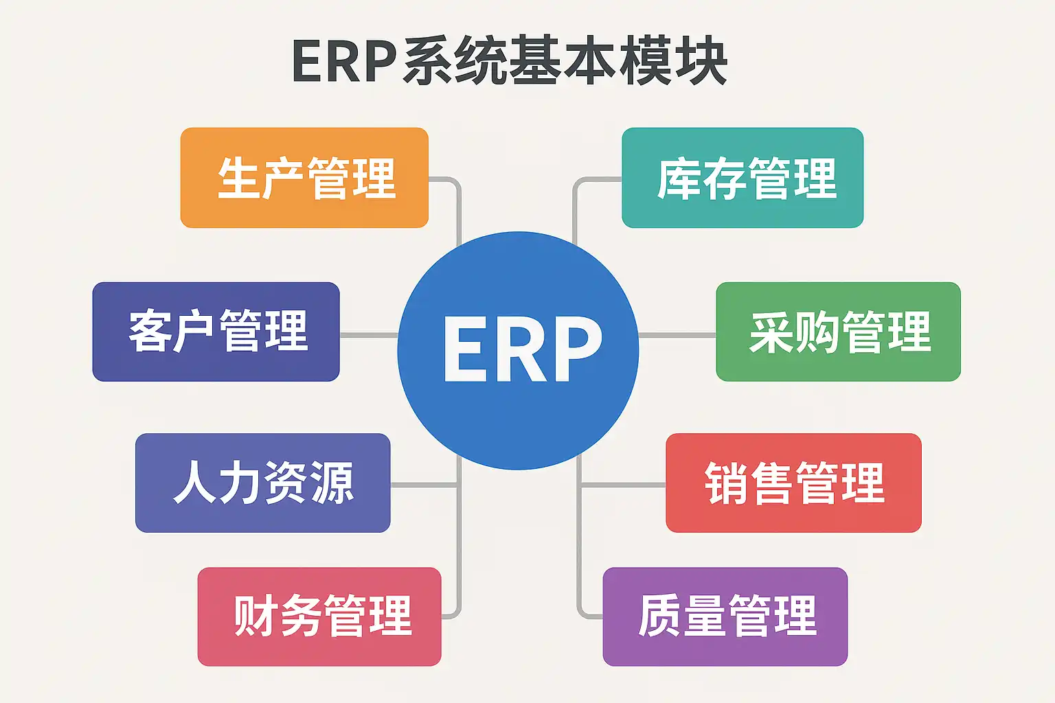 ERP(Enterprise Resource Planning,企业资源计划)系统是一套集成化的信息管理平台,通过不同功能模块协同工作,实现对企业各类资源(人力、资金、物料等)的全面管控。以下是ERP系统中最为常见和基础的功能模块: