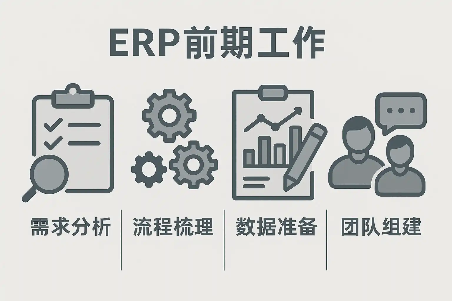 我刚接触ERP系统,听说前期工作非常关键,但具体有哪些步骤呢?我想了解这些步骤能帮我更好地规划和推进ERP项目。