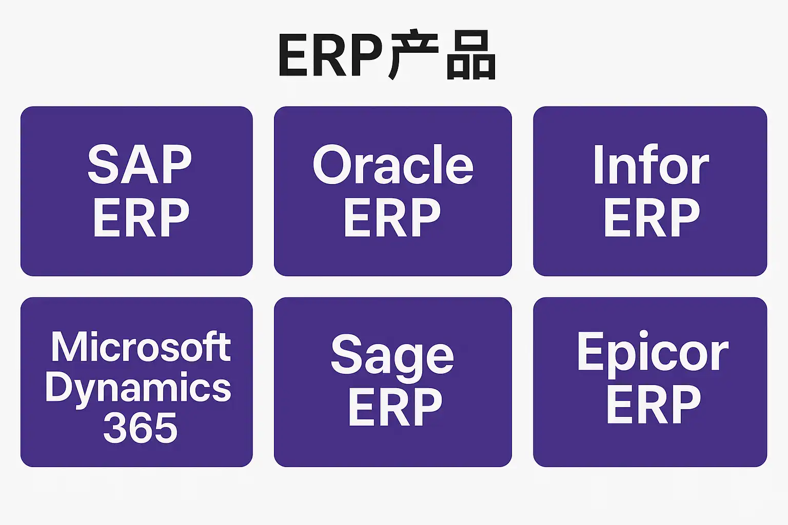 | Oracle | Oracle ERP Cloud (原E-Business Suite) | 云端部署灵活,财务与供应链管理尤为突出,高度安全可靠 |