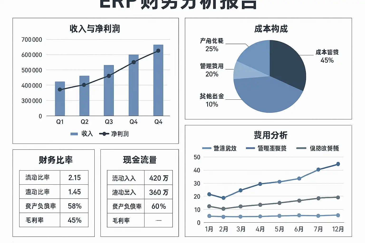 例如,通过ERP系统自动生成的现金流量表,可以精准展示资金进出,提升财务透明度。据统计,采用ERP财务分析报告的企业,决策效率平均提升30%。