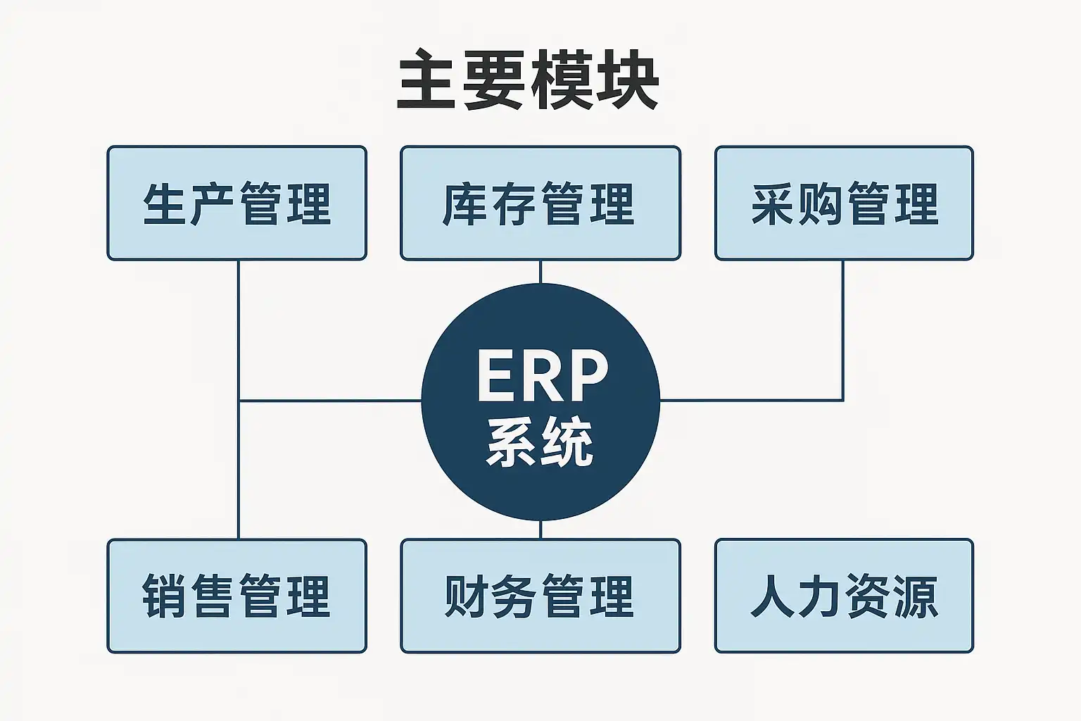 ERP系统通过集成不同的业务职能,将企业各部门的信息统一到同一平台,实现数据共享和流程优化。常见的主要功能模块如下: