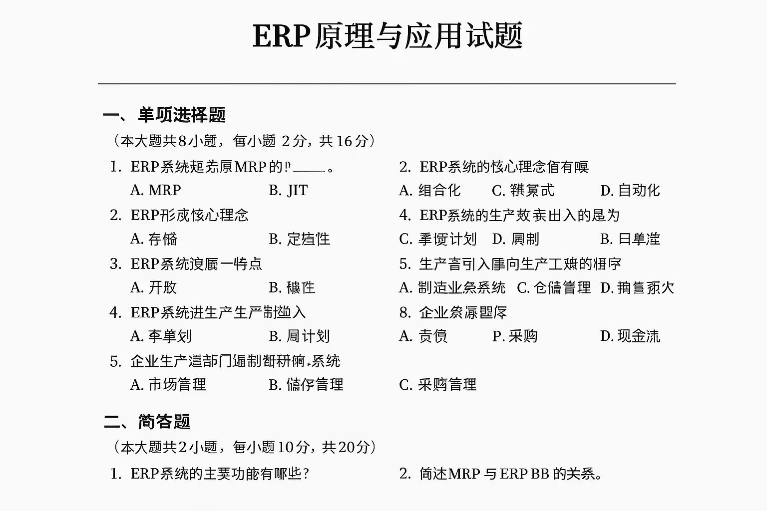 《erp原理与应用试题》