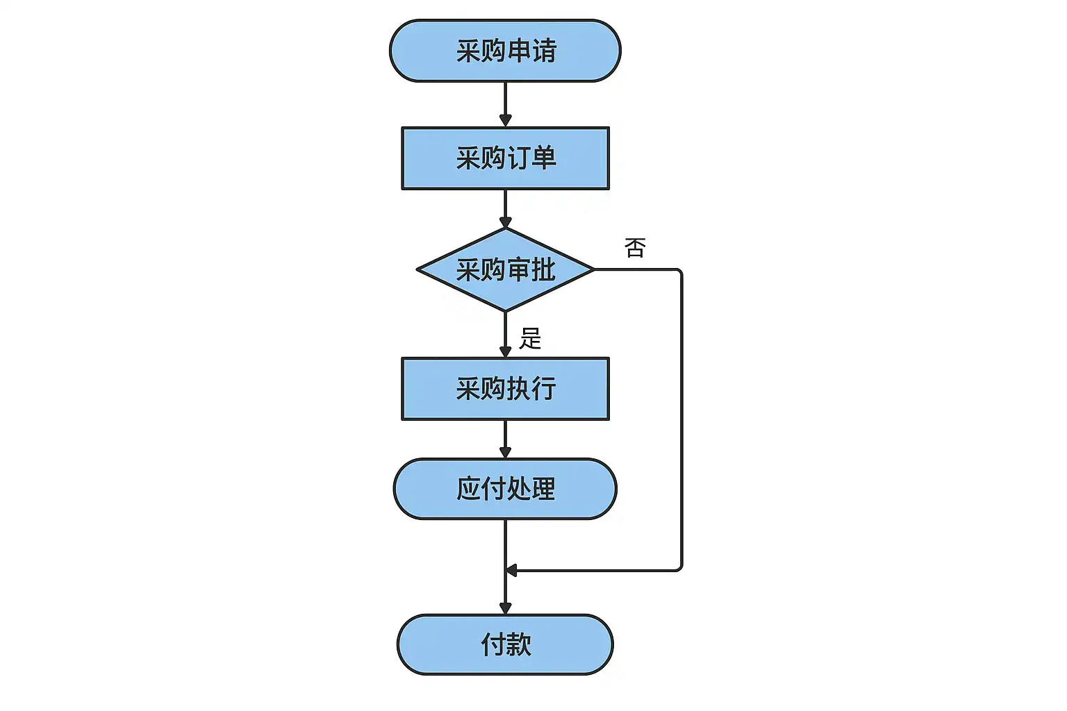 - 审批流程(Approval Process):采购申请经过多级审批,确保合理性和预算控制。