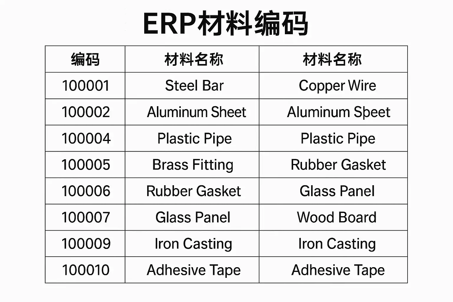 - 唯一性:每个代码只能对应一种物料